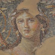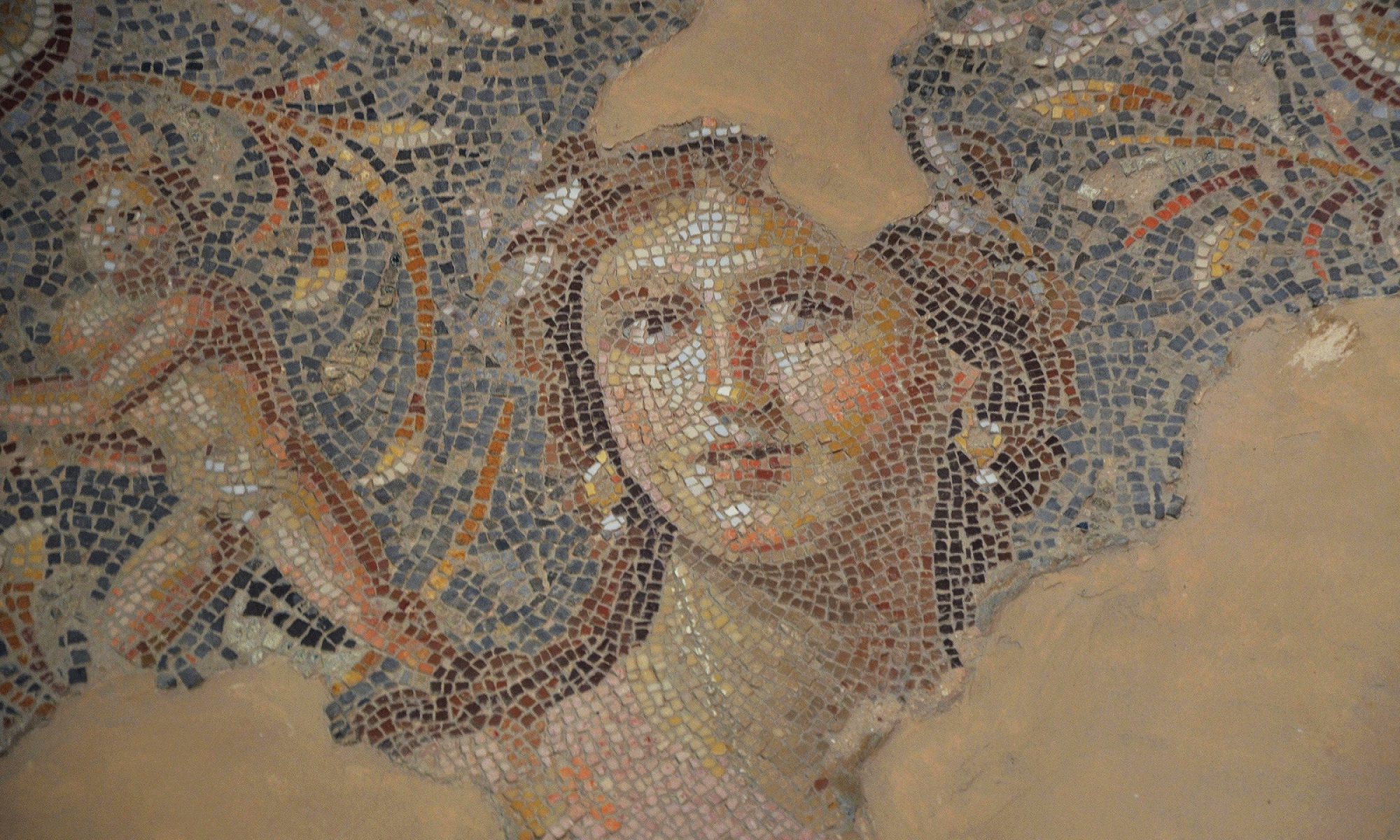 Modern archeologists have uncovered an enigmatic and beautiful mosaic in the Lower Galilee region of northern Israel, on a site believed to have once been the ancient city of Sepphora. In the banquet room of a Roman villa perched above a fertile valley midway between the Mediterranean Sea and the Sea of Galilee, a third century artist juxtaposed scenes of Dionysian legend with the face of a beautiful woman. Her head held high, seemingly steady and erect, is encircled by what appears to be a laurel wreath. Her coiffed long hair and sizable earrings contribute to an impression of wealth and quiet elegance. Her visage and coloring, even as they appear so many centuries later in somewhat roughly chiseled ancient tesserae, are delicate and fair. But it is the steady gaze of her eyes and the mystery surrounding her true identity that prompted observers centuries later to compare her to perhaps the most enduring portrait of a woman ever created, when her likeness was dubbed the Mona Lisa of Galilee.